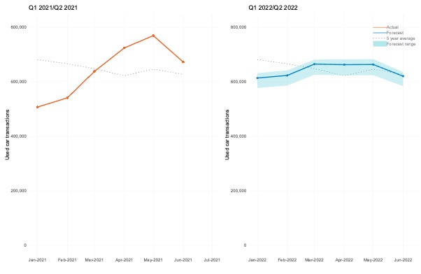 The most likely scenario for the full-year forecast sees 2022 end on 7.701 million used car transactions, a 4.2% increase year-on-year compared to 2021’s forecast of 7.392 million. This would be a 4.4% increase compared to the 2001-2019 average, but a 3.0% decrease compared to the most recent 2019 pre-pandemic performance.